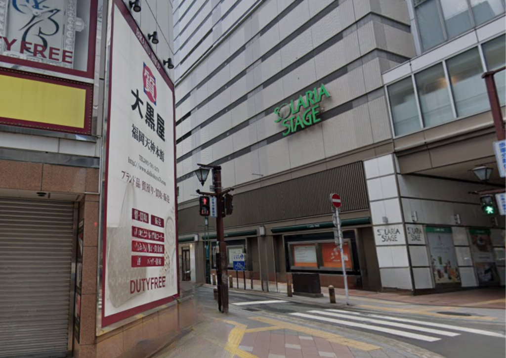 ソラリアステージ・ソラリアプラザ前。西鉄天神大牟田線「福岡(天神)」駅すぐ。