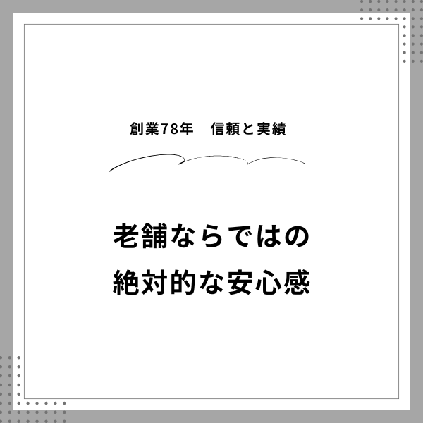 弊社は1947年に質屋として創業し、78年の実績がございます。長い歴史の中で培われてきた信頼と実績は他社にはない強みです。先人から受け継がれてきたノウハウを生かし最大限お客様へ還元しています。